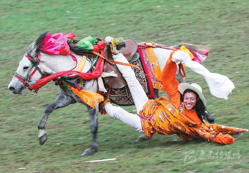 理塘賽馬節(jié)上,選手正在表演。