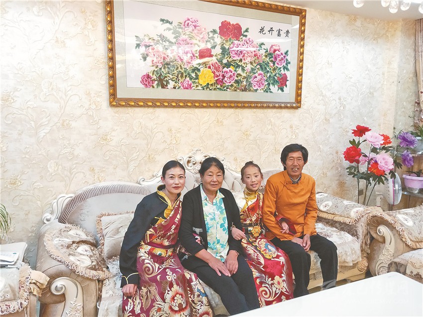 走進澤仁塔新家中,只見嶄新的家具和現(xiàn)代化的家電一應(yīng)俱全,小康之家的氣息撲面而來?!啊畤}噠熱’(藏語,意為‘很好’)!這兩年,生活發(fā)生了喜人的變化,感謝黨,感謝政府!”說起自己的新家新生活,身穿藏族傳統(tǒng)服飾的澤仁塔新欣喜地豎起大拇指。