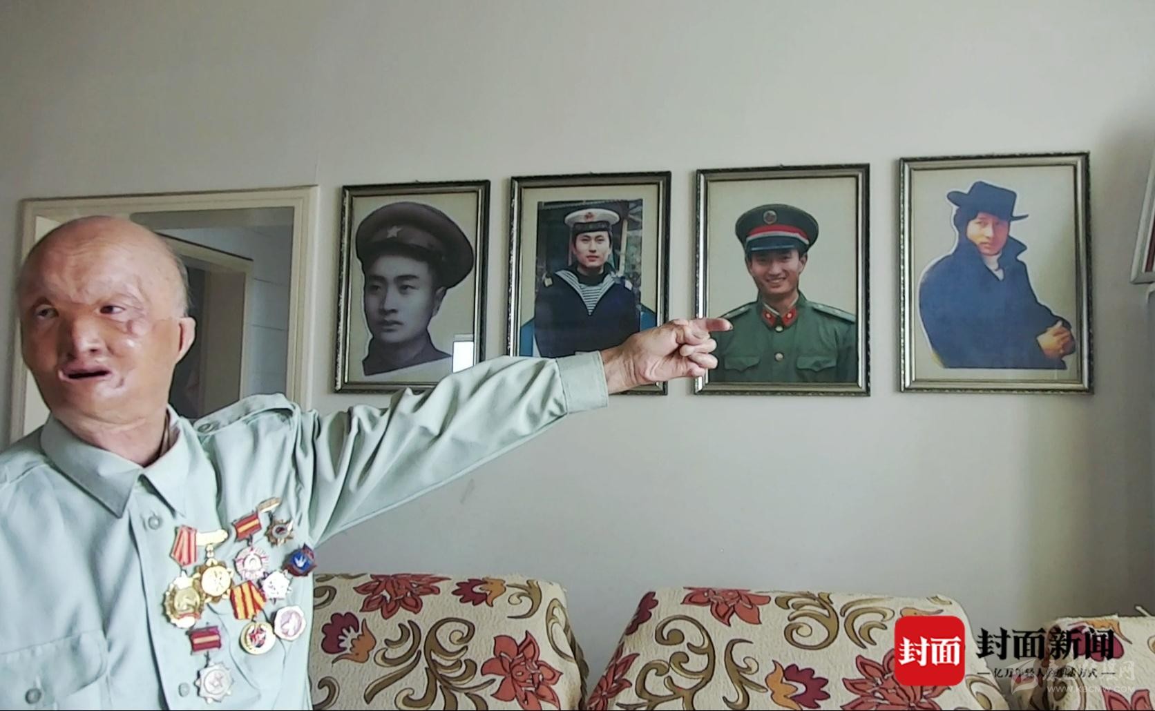 初見這位老人,他的面容讓人印象深刻。69年前那個冬天的朝鮮戰(zhàn)場上,是他一輩子最難忘的經(jīng)歷。年僅20歲的他遭遇敵機投擲的凝固汽油彈,導(dǎo)致面部、手部嚴重燒傷,造成一級傷殘。