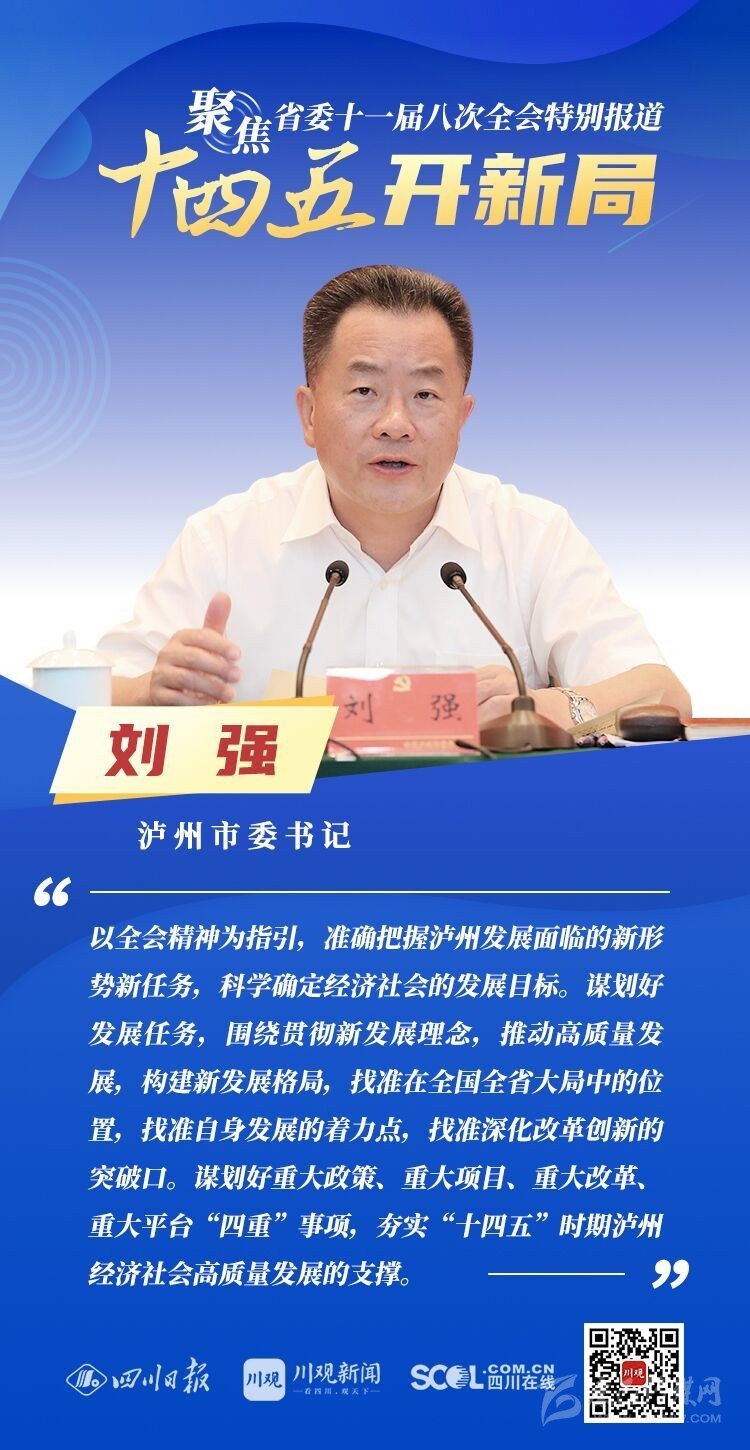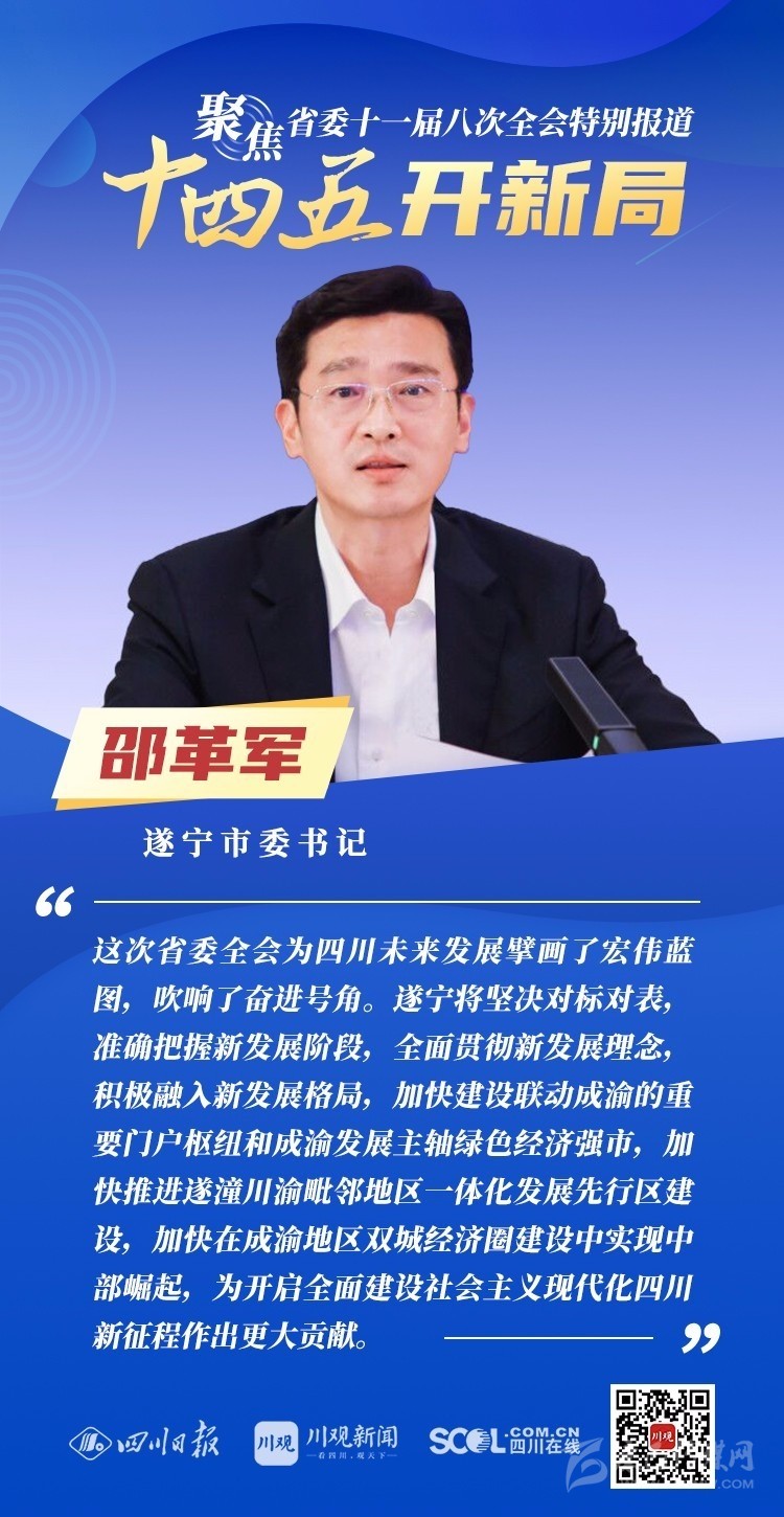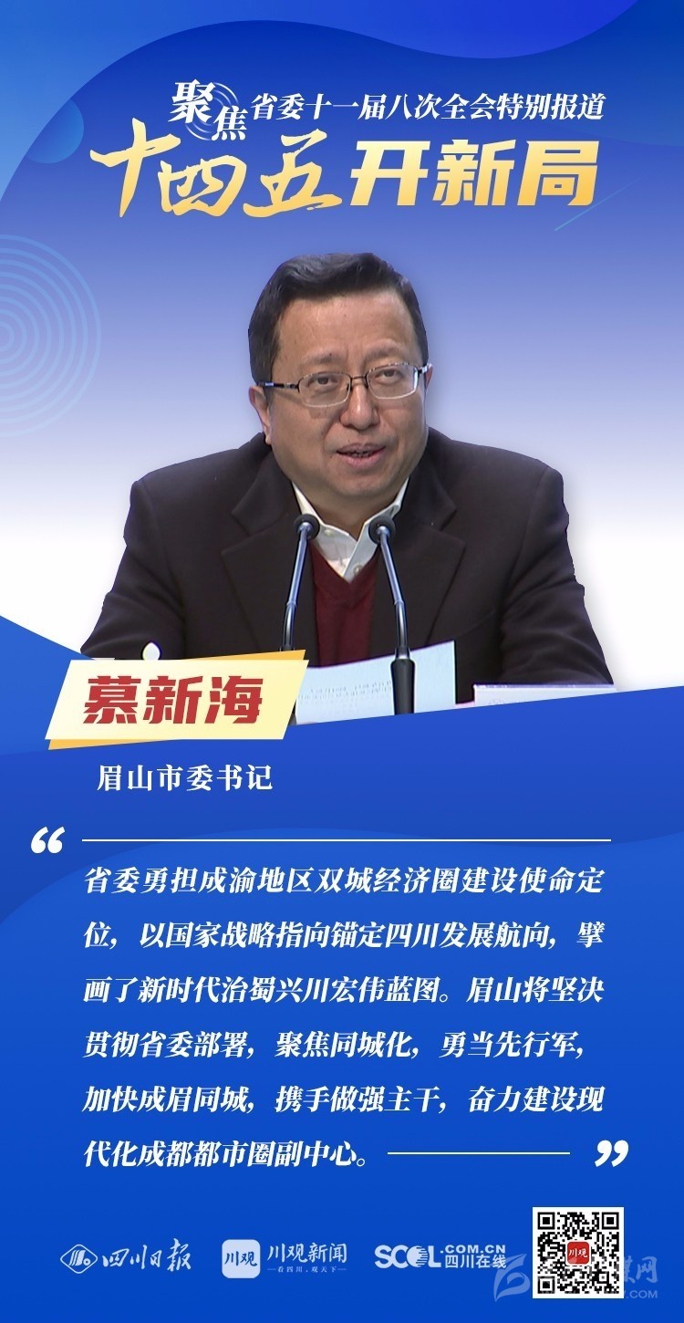 12月3日,中共四川省委十一屆八次全會在成都開幕,全會將深入學習貫徹黨的十九屆五中全會精神,審議《中共四川省委關于制定四川省國民經(jīng)濟和社會發(fā)展第十四個五年規(guī)劃和二〇三五年遠景目標的建議(討論稿)》,為未來5年乃至更長時期四川發(fā)展謀劃新藍圖 。