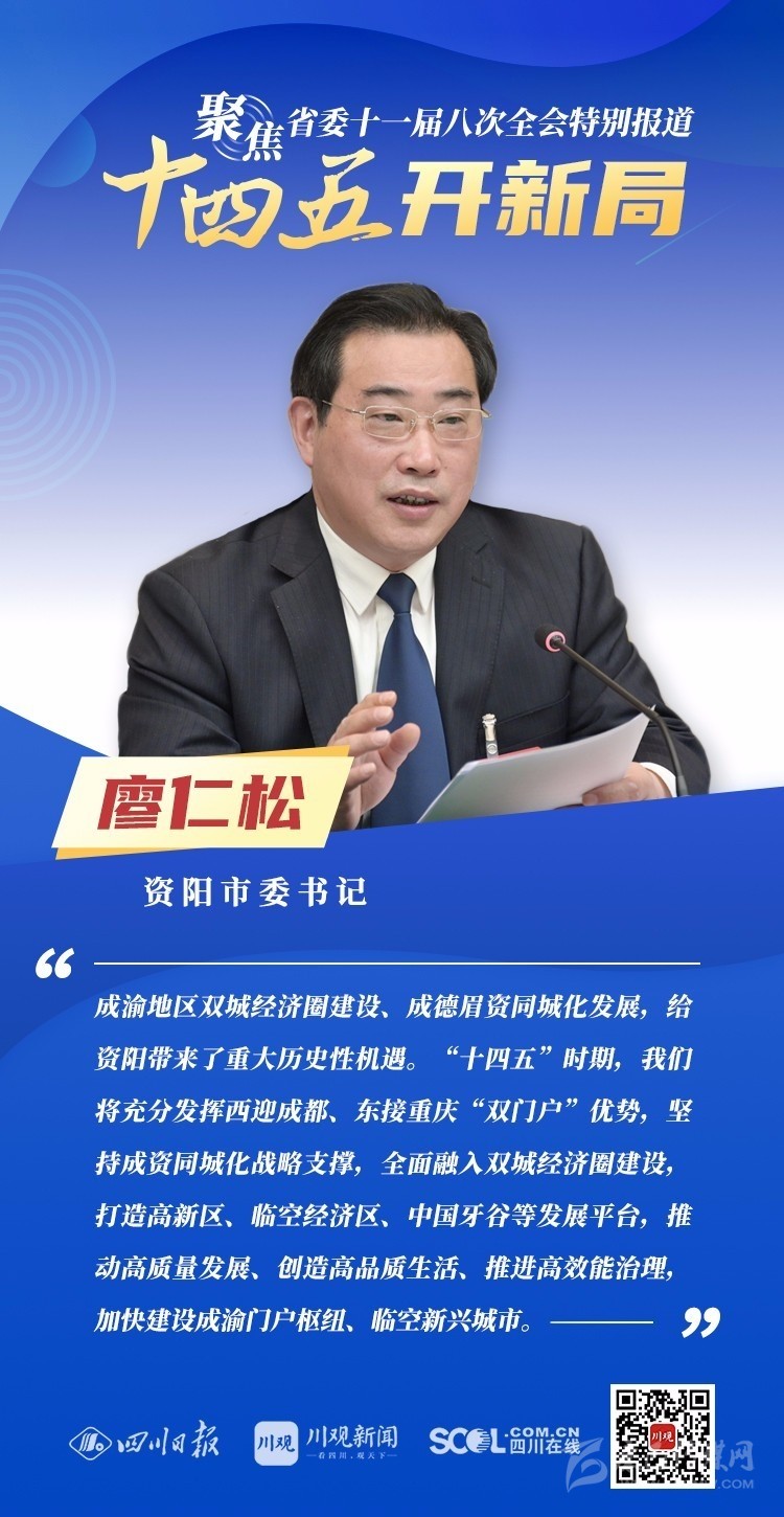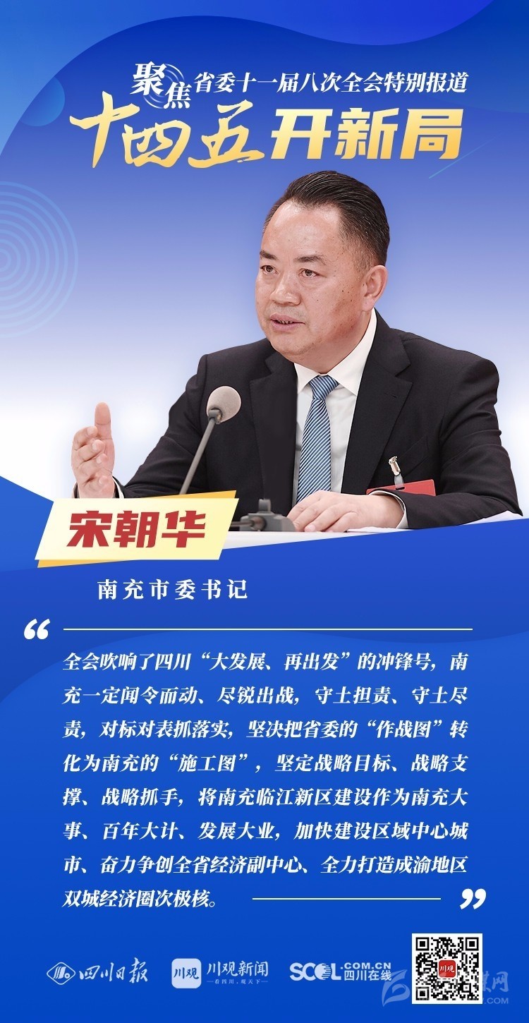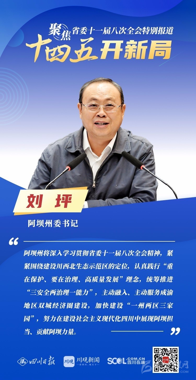 12月3日,中共四川省委十一屆八次全會在成都開幕,全會將深入學習貫徹黨的十九屆五中全會精神,審議《中共四川省委關于制定四川省國民經(jīng)濟和社會發(fā)展第十四個五年規(guī)劃和二〇三五年遠景目標的建議(討論稿)》,為未來5年乃至更長時期四川發(fā)展謀劃新藍圖 。