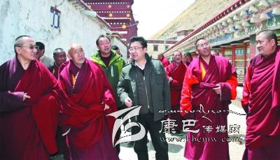 在色須寺,益西達(dá)瓦親切看望了色須寺寺管會成員,在寺管會負(fù)責(zé)人的陪同下視察了僧人學(xué)習(xí)情況和色須寺及寺辦藏藥廠建設(shè)情況,并與僧人代表進(jìn)行了座談。