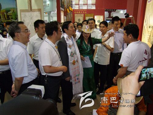 視察中,劉奇葆興致勃勃地觀看了我州文化形象展示大屏幕和非物質(zhì)文化遺產(chǎn)展示、土特產(chǎn)品及民間工藝品。他來到藏文書法、藏族噶瑪嘎孜畫派、藏族藥泥面具制作技藝等非物質(zhì)文化遺產(chǎn)項目和土特產(chǎn)品展品前,仔細(xì)詢問這些藝術(shù)品的生產(chǎn)工藝、制作流程等情況后,對我州深厚的文化底蘊(yùn)和豐富的旅游資源連連稱贊,殷切希望甘孜州傳承好歷史文化,發(fā)揮好民間藝術(shù)非遺項目,走文化