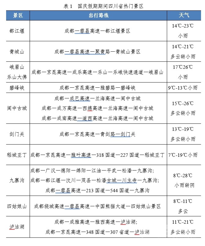 國(guó)慶大假即將來(lái)臨,去哪里?堵不堵?是公眾關(guān)心的熱點(diǎn)。9月28日,四川省交通運(yùn)輸綜合行政執(zhí)法總隊(duì)(廳高管局)、四川省公安廳交通警察總隊(duì)聯(lián)合發(fā)布假期高速公路研判,提醒廣大車主朋友們出行前合理安排出行時(shí)間和出行路線,盡量避開高峰時(shí)段和擁堵路段。