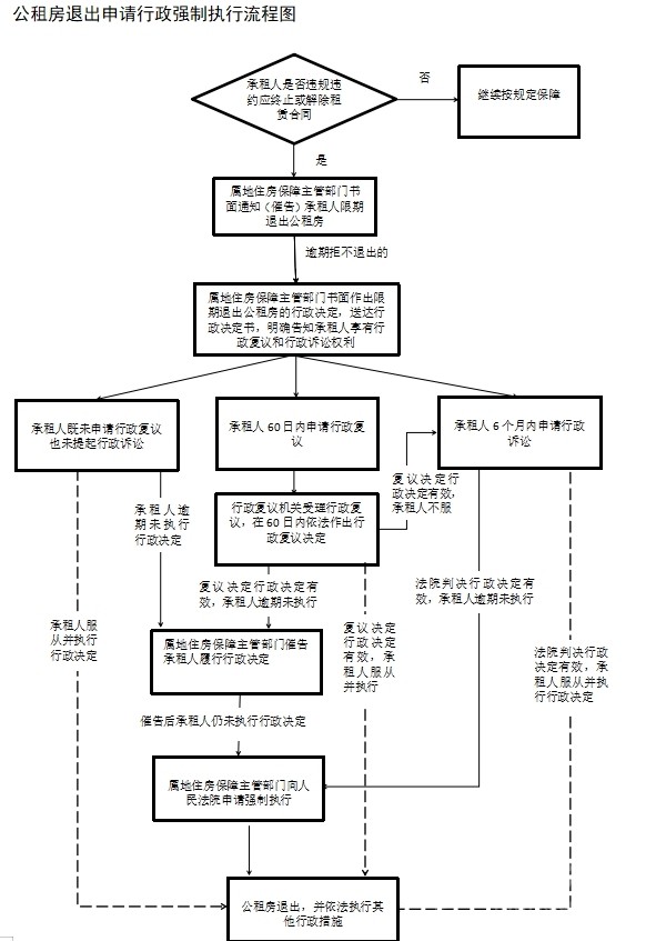 根據(jù)《指導(dǎo)手冊(cè)》,公租房退出以承租人行為和情形不同分為退回和騰退兩種方式,屬地住房保障主管部門對(duì)承租人到期拒不退出房屋及設(shè)施設(shè)備的,應(yīng)作出責(zé)令其限期騰退公租房的書面決定,逾期仍不履行的,可依法向人民法院申請(qǐng)行政強(qiáng)制執(zhí)行,“剛?cè)岵?jì)”解決公租房退房難問(wèn)題。