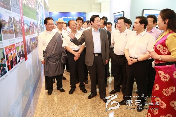 6月8日上午10時,劉奇葆、王正偉來到民族文化宮,首先走進四川甘孜藏區(qū)發(fā)展成就暨旅游圖片展現(xiàn)場。這里,展示的是甘孜藏區(qū)經(jīng)濟社會發(fā)展成就、自然風(fēng)光、歷史文化、民族風(fēng)情、田園藏寨等方面內(nèi)容的圖片。一幅幅圖片,一個個場景,劉奇葆都非常熟悉。在四川工作期間,他曾十幾次奔赴甘孜藏區(qū)考察,足跡遍布全州18個縣。劉奇葆仔細觀看展示圖片,并不時詢問交通通信、優(yōu)勢產(chǎn)業(yè)等發(fā)展情況以及民生改善的情況。劉奇葆說,甘孜山川秀美,民族風(fēng)情濃郁,是一方充滿生機和活力的土地,希望甘孜立足自身實際,大力發(fā)展農(nóng)牧業(yè)和文化旅游業(yè),大力加強生態(tài)建設(shè)和環(huán)境保護,大力改善民生,努力走出藏區(qū)科學(xué)發(fā)展、跨越發(fā)展之路。