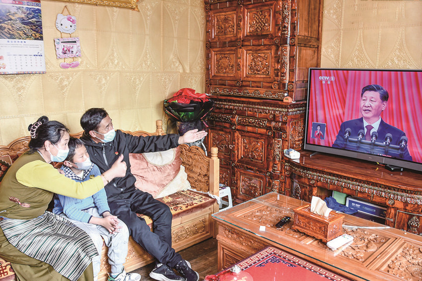 本網(wǎng)訊 10月16日一大早,鄉(xiāng)城縣熱打鎮(zhèn)阿都村村民翁澤便和家人守候在電視機(jī)旁,期待著中國(guó)共產(chǎn)黨第二十次全國(guó)代表大會(huì)的開幕。