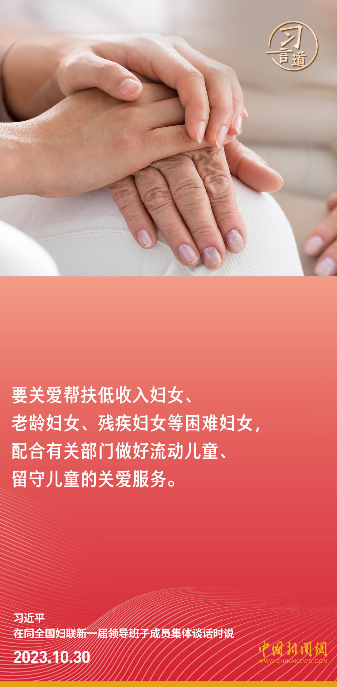 中共中央總書記、國家主席、中央軍委主席習(xí)近平30日下午在中南海同全國婦聯(lián)新一屆領(lǐng)導(dǎo)班子成員集體談話并發(fā)表重要講話。習(xí)近平強(qiáng)調(diào)——