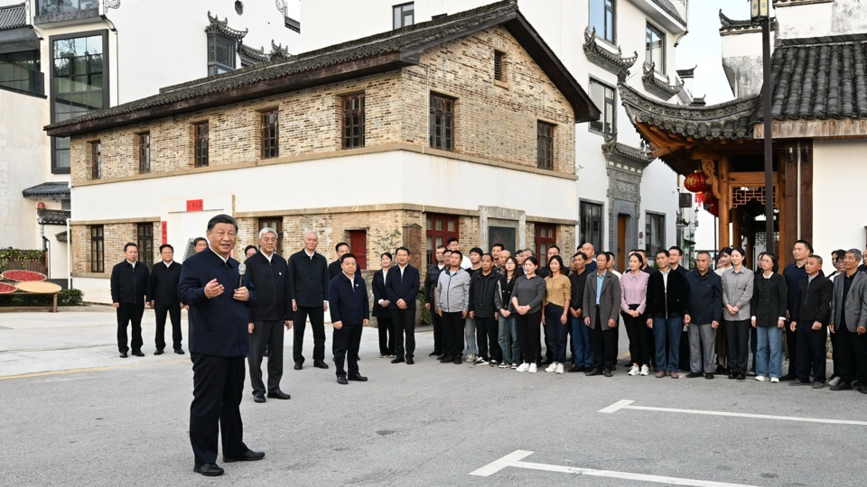 △10月11日,習(xí)近平總書記在上饒市婺源縣秋口鎮(zhèn)王村石門自然村考察時(shí),同村民們親切交流。