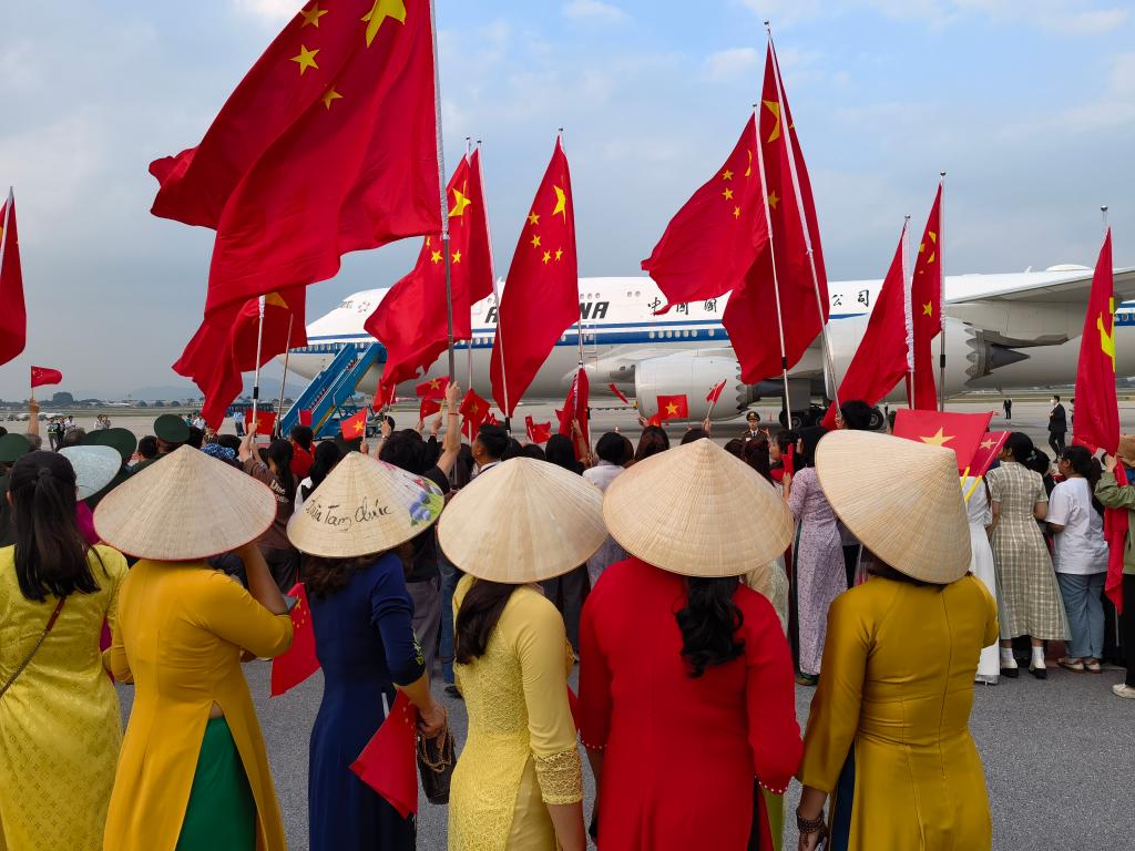 離開河內(nèi)赴機場途中,當?shù)孛癖姾腿A僑華人聚集在道路兩旁,揮舞中越兩國國旗,熱烈歡送習近平總書記,并祝賀訪問取得圓滿成功。