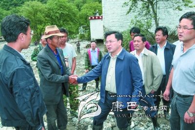 胡昌升在丹巴縣東谷鄉(xiāng)泥石流災(zāi)害現(xiàn)場察看災(zāi)情、指導(dǎo)救災(zāi)工作、慰問受災(zāi)群眾。