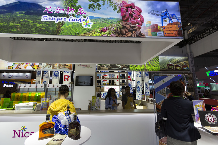 2023年11月6日在第六屆進(jìn)博會國家展拍攝的尼加拉瓜展臺。