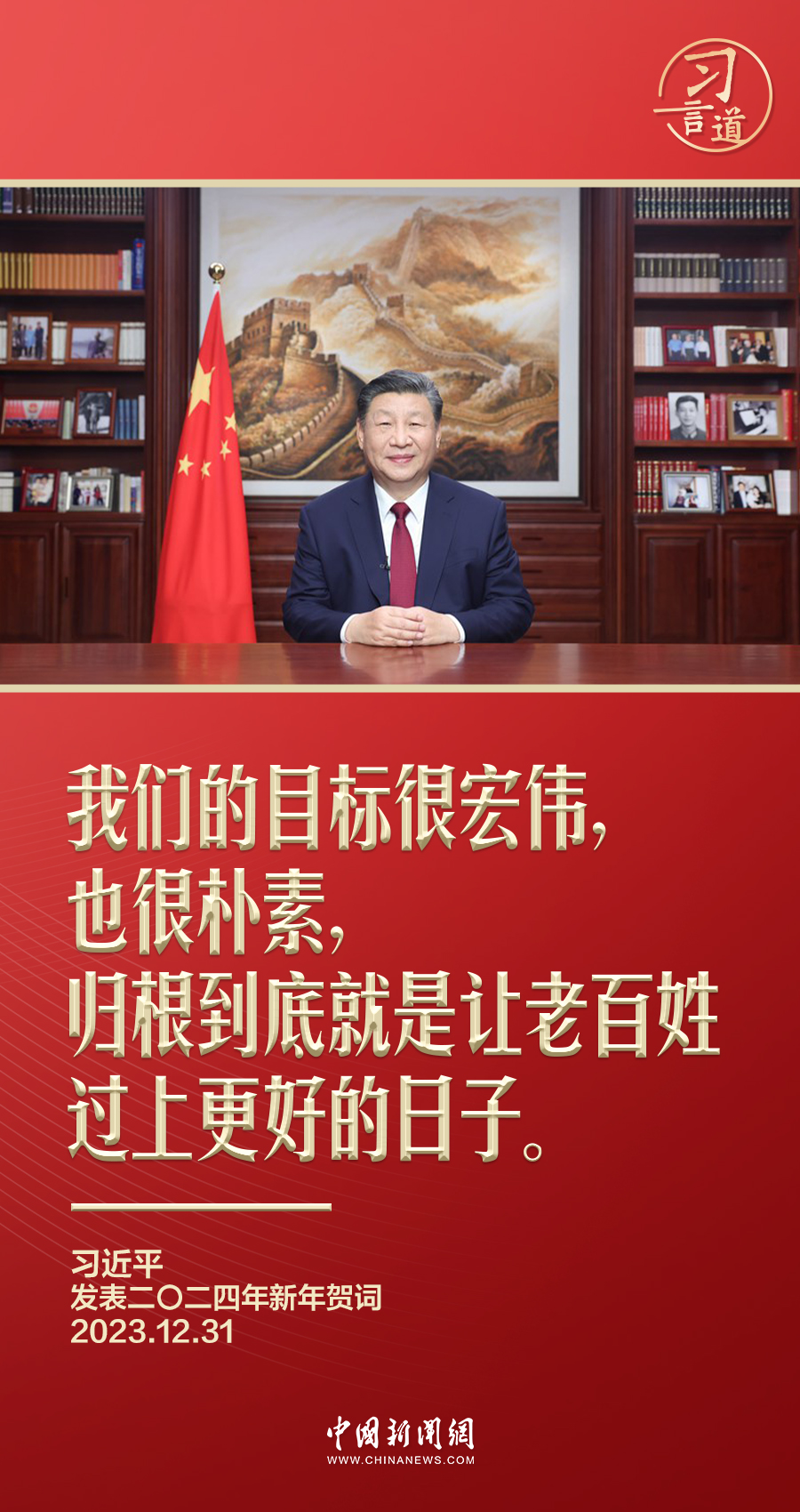 一元復始,歲律更新。12月31日晚,國家主席習近平的2024年新年賀詞如約而至。在賀詞中,習近平再次強調中國共產黨孜孜以求的目標——“讓老百姓過上更好的日子”。