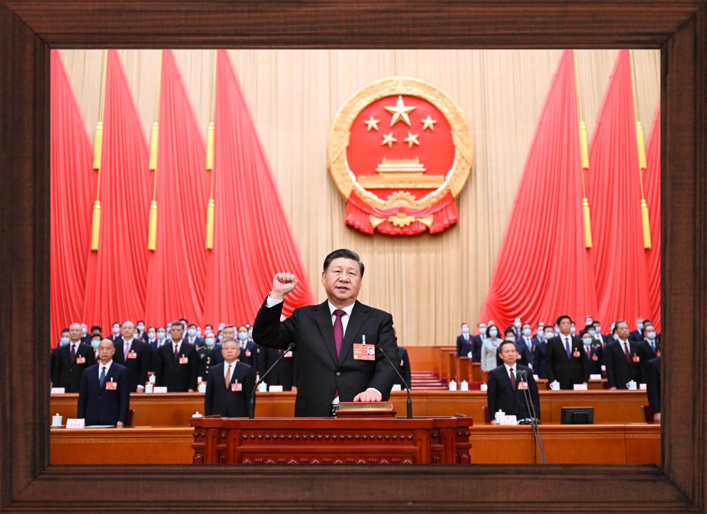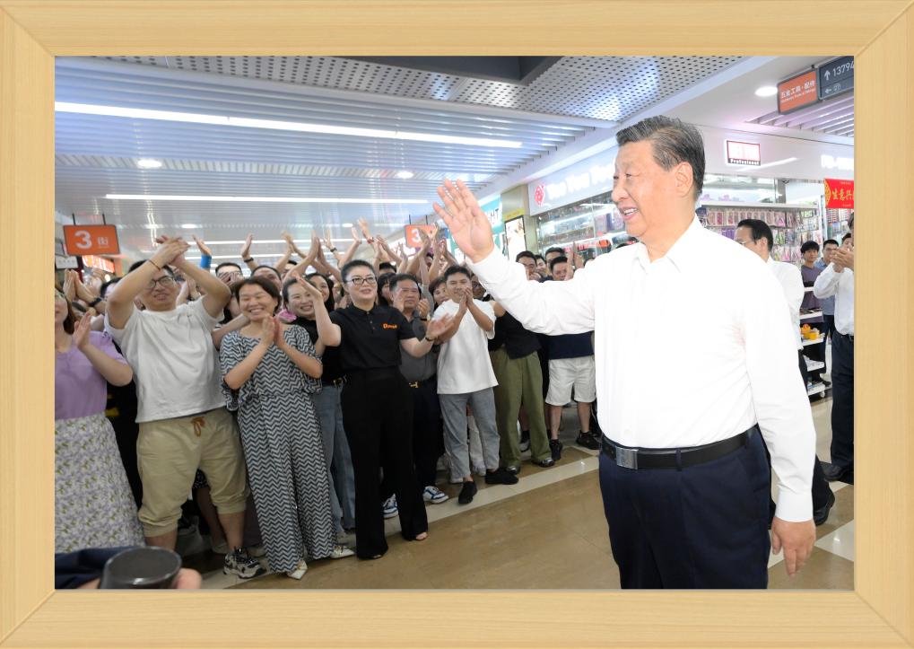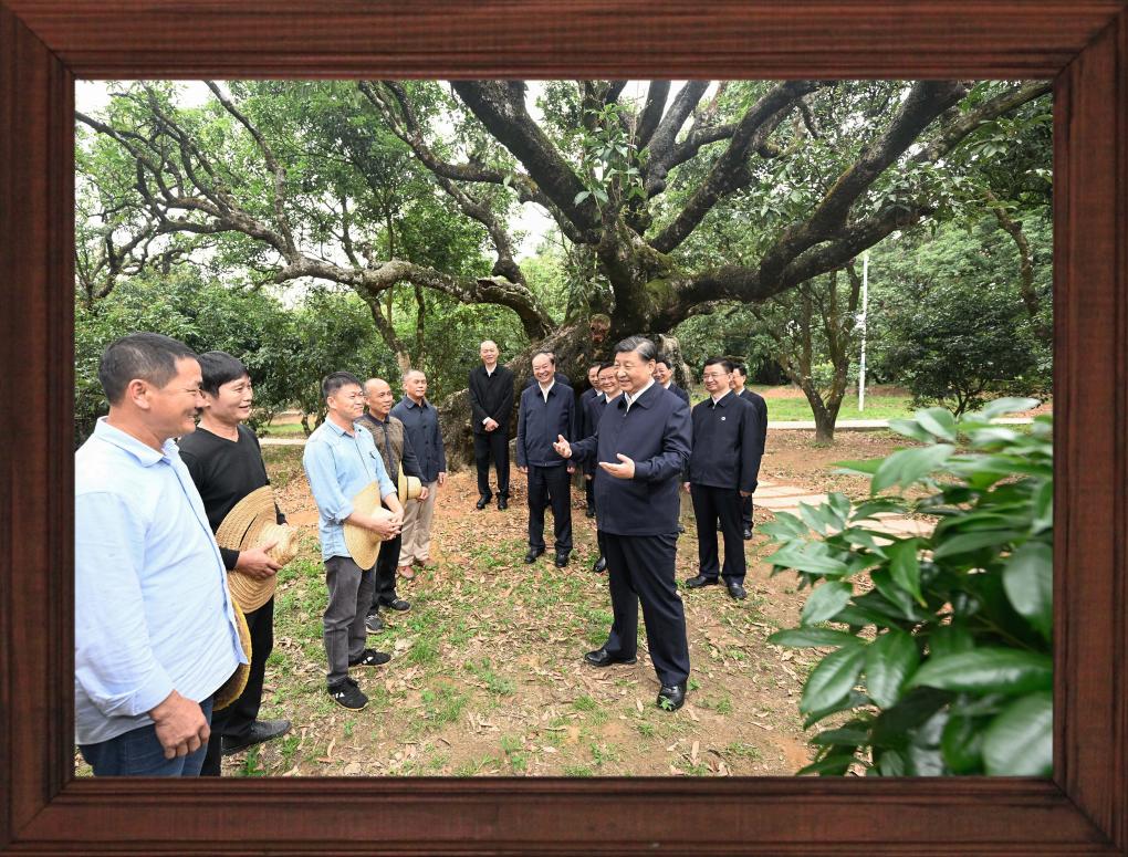 12月31日晚,國家主席習近平發(fā)表二〇二四年新年賀詞。 推近、定格、銘記,透過總書記身后書架上的一張張照片,我們記住過去,也對未來充滿信心。 不變的情懷 幾張老照片,在書架上擺放多年,人們已經非常熟悉。 習近平同志青年時期的軍裝照,連續(xù)第3年出現(xiàn),擺放在書架醒目位置。 這令人不由得想起10年前的一段暖心對話—— 2013年11月,湖南十八洞村,村民石拔三老人見到了來此考察的習近平總書記。 “怎么稱呼您?”“我是人民的勤務員?!?/p> 歲月流轉,初心不改。從照片上的青年,到人民的勤務員,“我將無我,不負人民”的赤子情懷始終如一。 家庭是個人溫馨的港灣。習近平同志一家三口和父親習仲勛在一起、習近平同志在福州時帶女兒玩的照片,自總書記第一次發(fā)表新年賀詞以來,就一直擺在書架上。 2023年,又有幾張新的總書記家庭照片映入眼簾。 一張是習仲勛同志的單人照。 2023年是習仲勛同志誕辰110周年。習近平總書記從小深受父親影響,形容父親“像一頭老黃牛,為中國人民默默地耕耘著”,“這也激勵著我將自己的畢生精力投入到為人民群眾服務的事業(yè)中,報效養(yǎng)育我的錦繡中華和父老鄉(xiāng)親”。 同夫人彭麗媛在深圳錦繡中華景區(qū)的留影、習近平夫婦懷抱女兒的合影,也是第一次出現(xiàn)在書架上。 天下之本在家。習近平總書記指出,家庭和睦則社會安定,家庭幸福則社會祥和,家庭文明則社會文明。 修身、齊家,家好、國更好。習近平總書記率先垂范,對家人的責任、對家風的傳承、對家教的認真令人動容。 不停的步履 11張2023年拍攝的照片,留下習近平總書記過去一年治國理政的經典瞬間。 2023年,習近平總書記共進行了16次國內考察,出訪4次,在國內數(shù)十次會晤到訪的各國各界人士。 將鏡頭拉遠,總書記的身影不辭萬里—— 向南,習近平總書記來到位于我國大陸最南端的廣東省湛江市徐聞縣;向北,考察中國最北端的黑龍江省漠河市北極村;向西,視頻連線守衛(wèi)祖國西大門的新疆軍區(qū)紅其拉甫邊防連執(zhí)勤哨所。 這張同紅其拉甫邊防連執(zhí)勤哨所等進行視頻通話的拼版照片,正是書架上的新照片之一。 “黃河九曲、長江奔流,總讓人心潮澎湃、豪情滿懷?!?023年,長江流經的11個省市里,習近平總書記考察了4個;黃河沿線的9個省區(qū)里,考察了5個;大運河涉及的8個省市里,考察了5個。 北瀕長江、南臨廬山、東枕鄱湖,江西九江的中國石化九江分公司位置特殊。10月,習近平總書記來到這里時,員工們圍攏過來紛紛向總書記問好。 總書記親切地說,希望你們按照黨中央對新型工業(yè)化的部署要求,堅持綠色、智能方向,扎扎實實、奮發(fā)進取,為保障國家能源安全、推動石化工業(yè)高質量發(fā)展作出新貢獻。 “追求卓越 勇創(chuàng)一流”——墻上的標語仿佛大家的回應。這一幕,也被相機定格。 將鏡頭推近,總書記的關切無微不至—— 這是對生產的關心。 萬畝甘蔗林中,習近平總書記同身著民族服裝的蔗農走在一起,大家的笑容像甘蔗一樣甜??倳洝盀楸U蠂姨菢I(yè)安全、促進蔗農增收致富發(fā)揮更大作用”的叮嚀深入人心。 古老荔枝樹下,總書記同現(xiàn)場技術人員親切交流,指出要著力做好“土特產”文章,以產業(yè)振興促進鄉(xiāng)村全面振興。 這是對企業(yè)的關注。 9月,習近平總書記來到浙江義烏國際商貿城考察,人們紛紛從商鋪中走出來,掌聲、問候聲、歡呼聲此起彼伏。 面對商戶、小企業(yè)主們,總書記點贊道:“義烏小商品闖出了大市場、做成了大產業(yè),走到這一步很了不起,每個人都是參與者、建設者、貢獻者。” 這是對人民的關懷。 2023年,華北、黃淮等地出現(xiàn)極端降雨,引發(fā)洪澇和地質災害。 北方入冬之際,習近平總書記來到北京、河北受災較重的相關地區(qū),看望慰問受災群眾。書架上這張照片,便是總書記在北京門頭溝妙峰山鎮(zhèn)水峪嘴村考察時留下的。 一度被洪水淹沒的水峪嘴村已經修葺一新,村民家中窗明幾凈、暖氣充足。 少年兒童的成長,習近平總書記一直牽掛在心,書架上多次出現(xiàn)總書記同孩子們在一起的場景。 2023年精選的,是一張習近平總書記在北京育英學校的照片。 看到孩子們正在學生農場勞動,總書記關心地說:“希望同學們從‘學農’中感受到農作的艱辛和農民的不易,從小養(yǎng)成熱愛勞動、珍愛糧食、尊重自然的良好習慣,為建設美麗中國作貢獻?!?/p> 不竭的力量 國徽高懸,熠熠生輝。這是一個歷史性的瞬間。 2023年3月10日,北京人民大會堂。全票當選國家主席、中央軍委主席的習近平,左手撫按《中華人民共和國憲法》,右手舉拳,面向近3000名全國人大代表,鄭重宣誓。 錚錚誓言,響徹人民大會堂,回蕩在960萬平方公里土地上,回蕩在億萬中華兒女心中。 重溫激動人心的一刻,我們信心十足、精神百倍。 信心,來自堅強的領導核心—— 書架上,擺放著習近平總書記在內蒙古自治區(qū)巴彥淖爾市臨河區(qū)國營新華林場考察時的一張照片。 走進正在治理的沙地,總書記感慨:“ 像‘三北’防護林體系建設這樣的重大生態(tài)工程,只有在中國共產黨領導下才能干成。三北地區(qū)生態(tài)非常脆弱,防沙治沙是一個長期的歷史任務,我們必須持續(xù)抓好這項工作,對得起我們的祖先和后代?!?/p> 言辭懇切。一