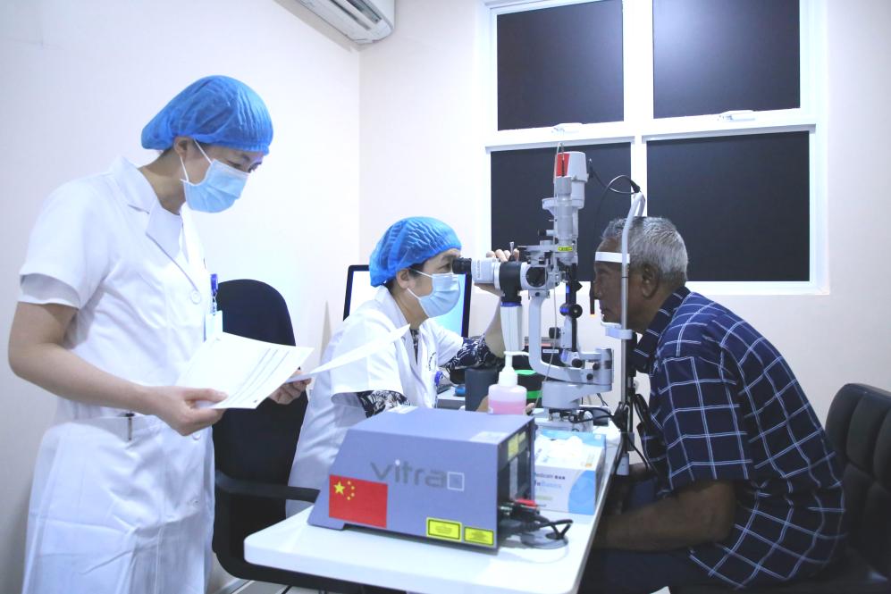 ??69歲的艾哈邁德·卡洛是中國(guó)醫(yī)療隊(duì)“光明行”活動(dòng)的獲益者。兩個(gè)兒子曾帶著患有眼疾多年的老人輾轉(zhuǎn)多家醫(yī)院,均因手術(shù)難度大而無(wú)法得到有效治療。2023年,中國(guó)醫(yī)療隊(duì)醫(yī)生經(jīng)過(guò)充分評(píng)估后,給老人成功實(shí)施了手術(shù)。術(shù)后揭開(kāi)眼罩時(shí),老人家激動(dòng)地說(shuō):“醫(yī)生,我可以看到你的胸牌了,謝謝你!”老人的兒子也在社交媒體發(fā)帖說(shuō):“真誠(chéng)感謝中國(guó)醫(yī)生?!背酥尾。蟹竭€著力培訓(xùn)當(dāng)?shù)蒯t(yī)務(wù)人員,力爭(zhēng)為當(dāng)?shù)卮蛟煲恢А皫Р蛔摺钡难劭茖?zhuān)家隊(duì)伍。