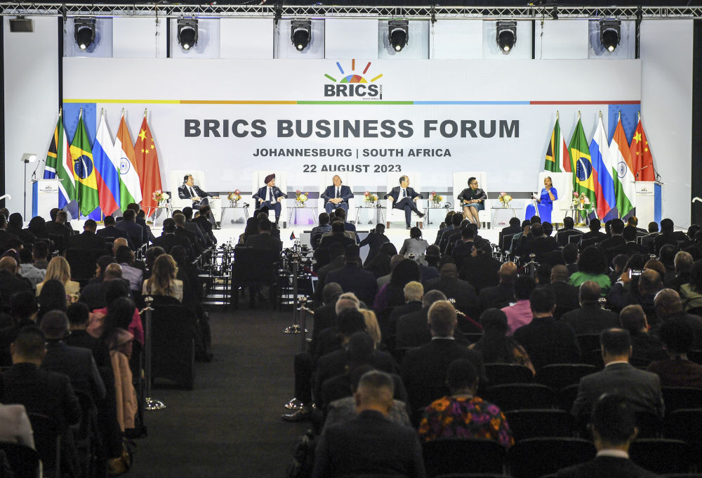 這是2023年8月22日在南非約翰內(nèi)斯堡拍攝的金磚國家工商論壇現(xiàn)場。新華社記者 李亞輝 攝