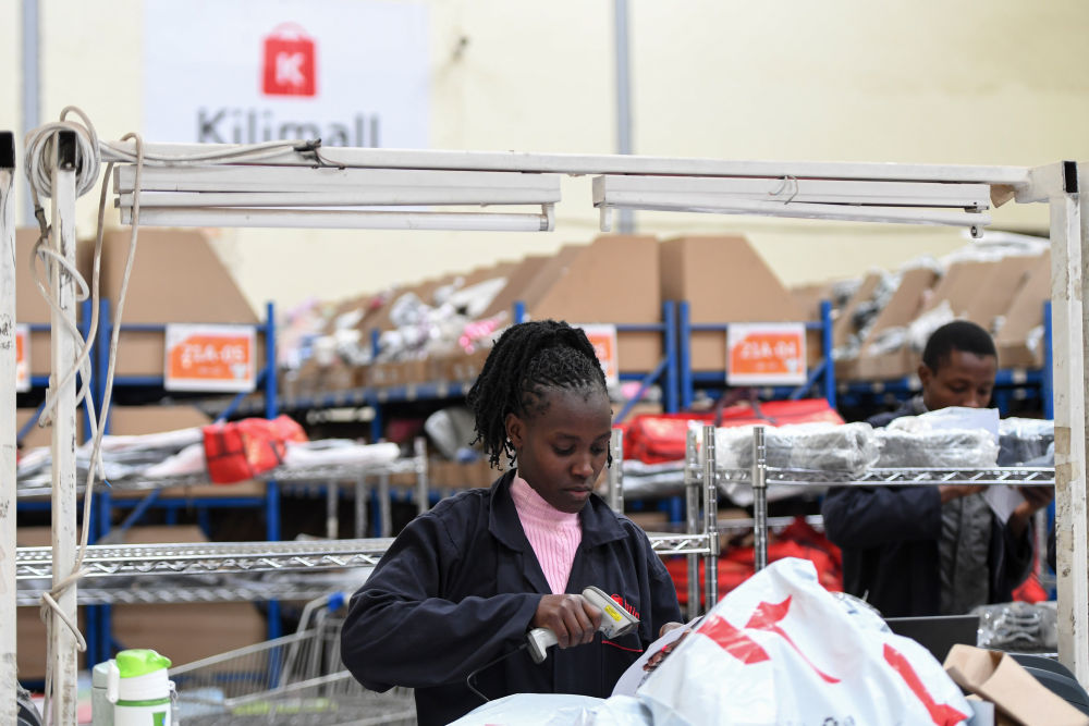 2023年7月28日,在肯尼亞姆洛隆戈,湖南長沙非拓信息技術(shù)有限公司旗下電商平臺(tái)Kilimall的員工在倉庫內(nèi)分揀貨物。新華社記者 李亞輝 攝