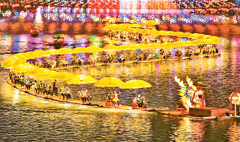 我國堅(jiān)持把恢復(fù)擴(kuò)大消費(fèi)擺在優(yōu)先位置,相繼出臺一系列促消費(fèi)政策,消費(fèi)市場恢復(fù)向好,消費(fèi)的基礎(chǔ)性作用更加顯著。圖為2024年2月11日,游客在湖北省恩施土家族苗族自治州宣恩縣城貢水河休閑賞夜景。 新華社發(fā) 宋文/攝