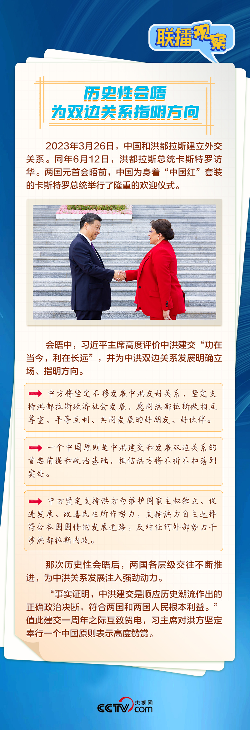 一年前,洪都拉斯成為中國第182個建交國。時值建交一周年,兩國元首互致賀電,習(xí)主席評價兩國雙邊關(guān)系“實現(xiàn)高水平起步”。