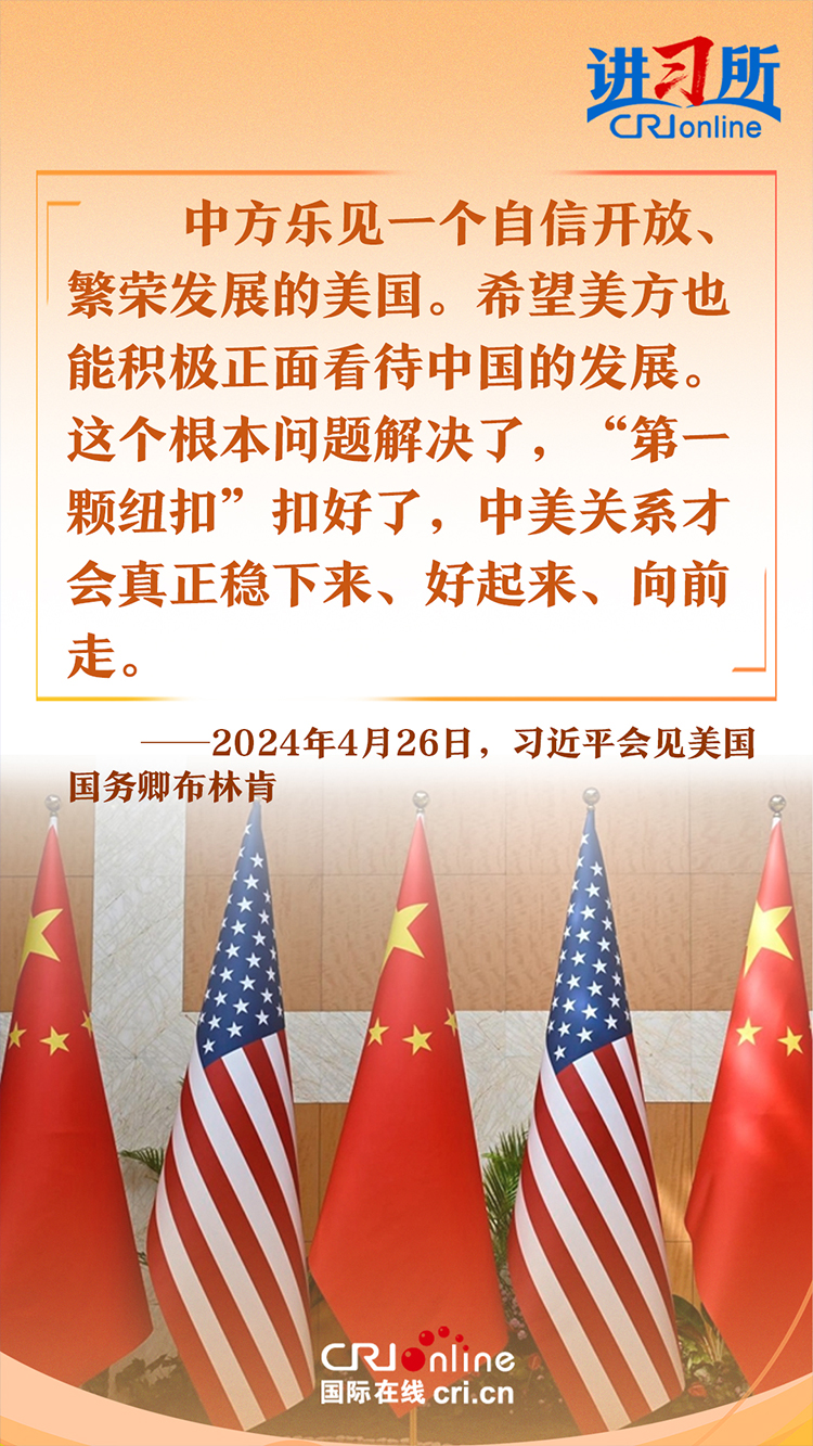 4月26日下午,中國(guó)國(guó)家主席習(xí)近平在北京會(huì)見美國(guó)國(guó)務(wù)卿布林肯時(shí)指出,希望美方能積極正面看待中國(guó)的發(fā)展。這個(gè)根本問題解決了,“第一顆紐扣”扣好了,中美關(guān)系才會(huì)真正穩(wěn)下來、好起來、向前走。