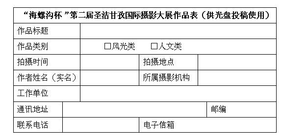 光盤(pán)包裝盒上注明大展名稱(chēng),每幅作品文件名處注明作品標(biāo)題,同時(shí)提供作者資料及作品信息(word文檔)。投稿作品為jpg格式,圖片統(tǒng)一處理為長(zhǎng)邊600—1000像素,文件大小控制在500KB以內(nèi)。無(wú)相關(guān)資料的作品,主辦單位有權(quán)取消其參評(píng)資格。作品以光盤(pán)(CD—R或DVD—R)形式郵寄至: