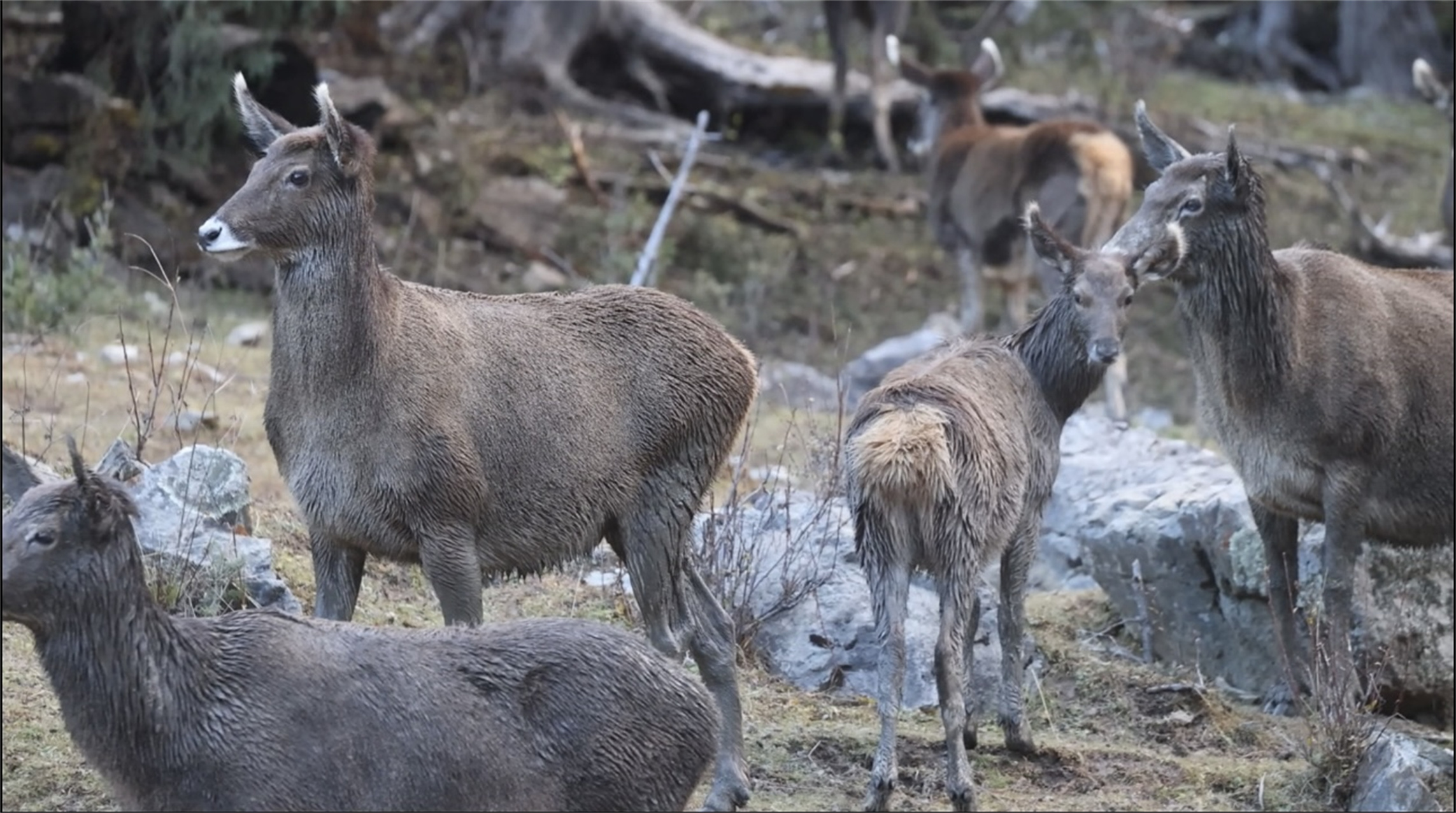 近年來,白玉縣生態(tài)環(huán)境逐年向好,多次發(fā)現(xiàn)包括白唇鹿在內(nèi)的各種瀕危野生動物的蹤跡。正是這樣的生態(tài)環(huán)境改善,使得白唇鹿等珍稀動物種群數(shù)量逐漸增多,下山覓食成為了一種常態(tài)。