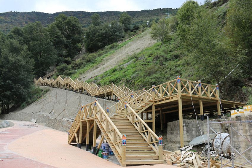 日前記者來到現(xiàn)場(chǎng),實(shí)地體驗(yàn)了在建中的爐巷·文成路。從甘孜日?qǐng)?bào)社到公主橋,一路上河堤已經(jīng)用漢白玉的石材建起了沿河欄桿,上面雕刻著吉祥八寶圖案。山路中還設(shè)計(jì)了一個(gè)較大的亭子,以這個(gè)亭子為中心,上通南無寺,下至將軍橋。一條藏式木制階梯長(zhǎng)廊與白土坎村的阿里布果游道相連接,站在長(zhǎng)廊的底端向上看階梯長(zhǎng)廊,長(zhǎng)廊就像一條在山間蜿蜒的巨龍,給爐巷·文成路添上了一抹神秘色彩。