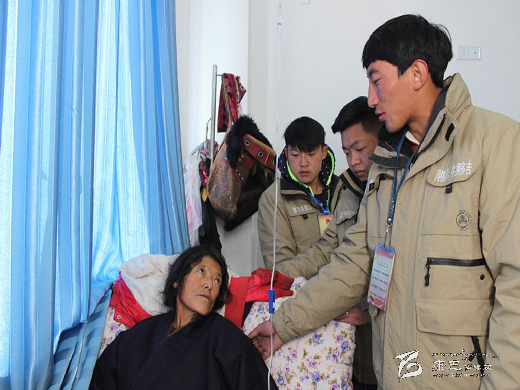 網(wǎng)格員在醫(yī)院看望貧困患者尼瑪土鄧。