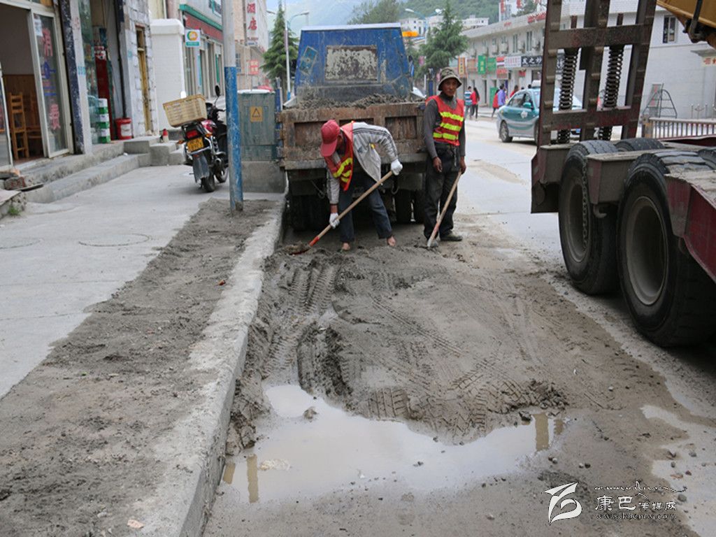 記者在現(xiàn)場看到,康定市政局正組織人員用鐵锨將淤泥鏟起,集中堆放在一起,排干水分后裝車運走;環(huán)衛(wèi)工人將路面上的垃圾、淤泥清理干凈,疏通下水設施,盡快排干路面積水。“我們今天早上六點不到就組織機關干部職工、城管執(zhí)法隊員10余名、環(huán)衛(wèi)工人30余名,出動1輛清洗車和3輛機動運輸車,重點清理積存淤泥較多的街道。”市政局局長譚易康介紹說。到下午六點,南郊街道的淤泥已清運完畢,路面已沖洗干凈,其他路段淤泥都已集中堆放,市容環(huán)境衛(wèi)生面貌恢復正常。