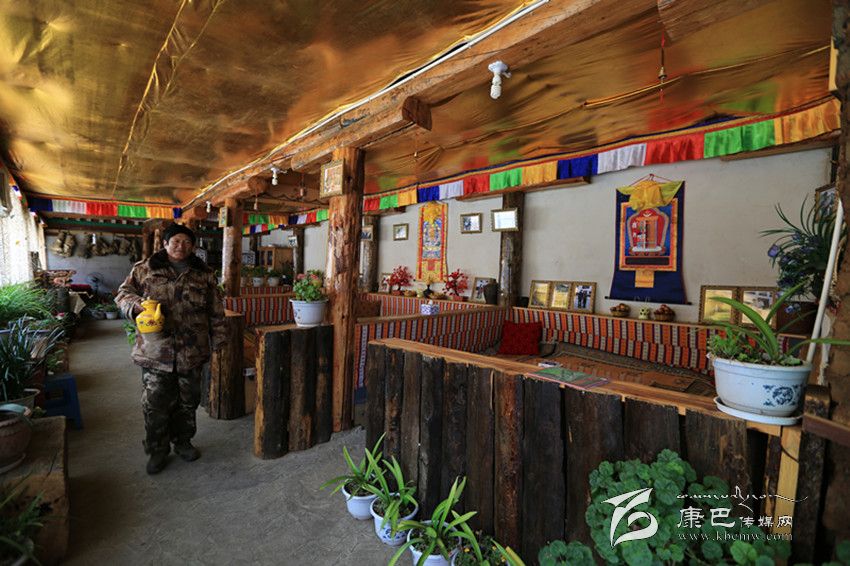 走進(jìn)里吾鐵超家近80根柱頭的藏房,金碧輝煌的經(jīng)堂、精致的唐卡、精妙的雕刻、細(xì)膩的墻畫,無一不讓人驚嘆叫絕。難怪主人家說“前次一批浙江游客在這里住了整整兩天也不想離去。”里吾林卡經(jīng)營才一年多,卻早已聲明遠(yuǎn)揚,不僅城里人休息日專門來這里體驗綠色生活,靜心養(yǎng)息,南來北往的過往游客也慕名前來小憩,探秘藏家風(fēng)情,品味藏家文化。