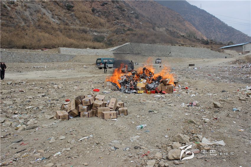 本網(wǎng)訊(謝靜 尼胡克布文/圖)3月15日,瀘定縣食品藥品工商質(zhì)量監(jiān)督管理局聯(lián)合司法局、發(fā)改局、農(nóng)牧局等相關(guān)部門(mén)以及煙草、桑吉卓瑪、瀘灃超市、電信等企業(yè),以“3.15”活動(dòng)為契機(jī),深入開(kāi)展“新消費(fèi),我做主”年主題宣傳活動(dòng),現(xiàn)場(chǎng)接待了各類(lèi)咨詢150余人(次),發(fā)放各種宣傳材料2000余份。宣傳活動(dòng)結(jié)束后,縣食品藥品工商質(zhì)量監(jiān)督管理局將近期收繳的價(jià)值9.1余萬(wàn)元的不合格食品、侵犯商標(biāo)的商品,運(yùn)送到垃圾場(chǎng)進(jìn)行了焚毀。圖為焚燒現(xiàn)場(chǎng)。