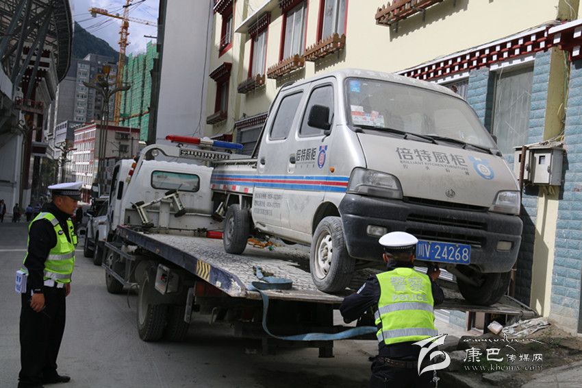 本網(wǎng)訊(記者 鄧安華 唐闖 文/圖)2日上午,記者在康定市北門體育場附近看見幾名交警正在拖移亂停亂放在街邊的一臺車輛。據(jù)悉,為保證藝術(shù)節(jié)期間康定主城區(qū)的交通順暢,康定市公安局交警大隊從當天起以康定主城區(qū)為中心,嚴厲查處影響交通秩序的各類突出交通違法行為。