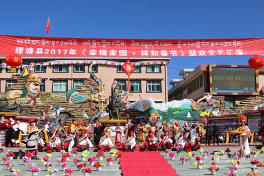 本網(wǎng)訊(葉強(qiáng)平 唐鵬飛 文/圖)1月29日,農(nóng)歷大年初二,理塘縣格薩爾廣場(chǎng)上彩旗飄揚(yáng)、歌聲陣陣、熱鬧非凡,一場(chǎng)帶有濃郁藏區(qū)特色的理塘縣2017年“幸福家園?祥和春節(jié)”聯(lián)歡文藝匯演,吸引來自縣城及周邊鄉(xiāng)鎮(zhèn)3000余農(nóng)牧民群眾前來觀看。