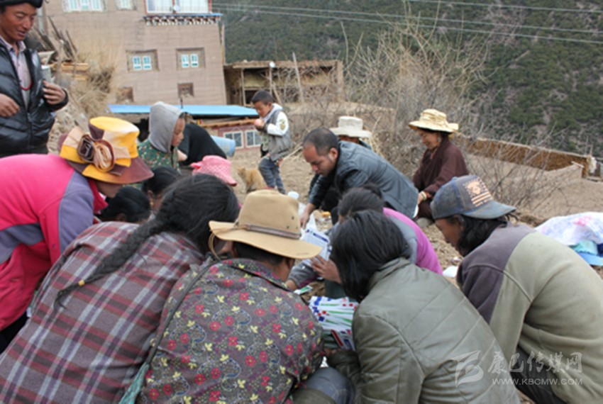 新龍縣委宣傳部干部安子子拉為尤拉西洛依村村民發(fā)放農(nóng)用物資