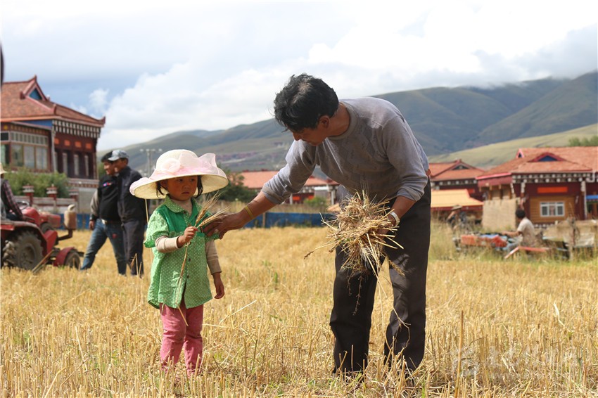 收割機、拖拉機、鐮刀……日前,爐霍縣仁達鄉(xiāng)村民用現(xiàn)代與傳統(tǒng)兼具的各種農業(yè)設備開啟了歡快的“收割大戰(zhàn)”。