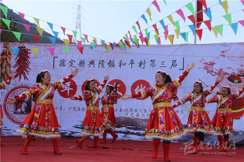“這里有舉世聞名的牛背山,還有那風(fēng)景秀麗的娘娘山,蜿蜒曲折的大渡河,遠(yuǎn)方的朋友??!歡迎你到和平來!”村民自告奮勇上臺演唱的歌曲,引得觀眾陣陣掌聲?!拔矣昧恕稓g迎你到康巴來》的調(diào),把歌詞改了,還是要體現(xiàn)我們的地方特色。唱得怎么樣不說,這是我們老百姓的舞臺?!?/p>