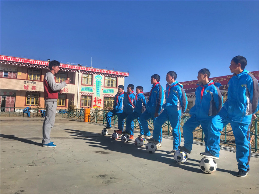 孩子們踢上了足球。