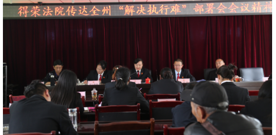 本網(wǎng)訊(張巍)2018年4月13日,得榮縣人民法院全體干警集中學(xué)習(xí)貫徹于本月11日在甘孜州中級人民法院召開的全州法院決勝“用兩年時(shí)間基本解決執(zhí)行難”部署會精神。會議由院黨組書記、院長孫菊花同志主持。