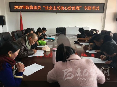 為書面測試廣大干部職工“社會主義核心價值觀”的實(shí)踐意義,11月29日下午2:00,2018年石渠縣政協(xié)機(jī)關(guān)“社會主義核心價值觀”專題考試,在縣政協(xié)黨組成員、副主席楊國華的監(jiān)考下開始。其書面閉卷筆試為:單項和多項選擇題及簡答“三嚴(yán)三實(shí)”與“社會主義核心價值觀”內(nèi)容和論述題:一是結(jié)合藏區(qū)與自己的思想實(shí)際及政協(xié)工作特點(diǎn),有條理的闡述如何開展“社會主義核心價值觀”實(shí)踐活動;二是踐行“社會主義核心價值觀”的重大意義及措施、方法等。通過一小時左右的臨場測試,應(yīng)考的政協(xié)機(jī)關(guān)干部職工含臨時工、駕駛員、實(shí)習(xí)生等,人人均遞交了滿意的答卷。