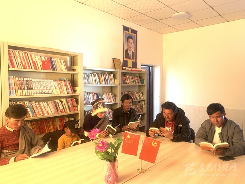 “平時只要有空,我們就到這里來聚會,看看書、聊聊天,有時村里會組織大家集中收看宣傳黨委政府政策的宣傳片,讓我們能及時了解國家方針政策。”4月13日午飯后,色達縣大則鄉(xiāng)厚門村的文化活動室,和往常一樣,又陸陸續(xù)續(xù)迎來三三兩兩的村民們。一樓的圖書室,幾位村民正在安靜地看書,有漢語的,也有藏語的,他們身后兩面的書架上,收藏了上萬本各類書籍,其中藏語書籍占了一半以上,還有一些光碟,都是歷次中央、省、州重大會議的宣講內(nèi)容。在二樓的會客室,49歲的村民擁巴和鄉(xiāng)親們正熱烈地聊著今年脫貧攻堅的形勢。