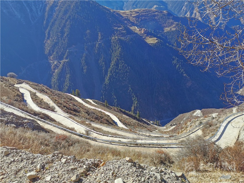 “然布村通村路路面寬4.5米、長7227米,總投資1084萬元?!毙慢埧h交通局工程師唐世楊介紹說,“整條路有數(shù)十個急彎道,比山路十八彎還復(fù)雜險峻,可以說是新龍縣最為‘陡、險、 急’的山路。”