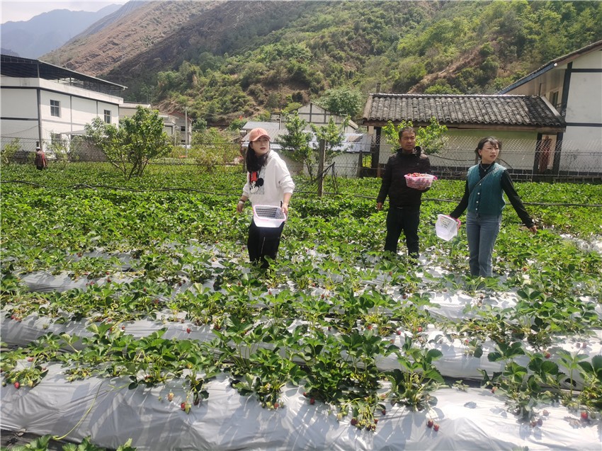 4月10日,記者在一片網(wǎng)圍欄圍成的草莓基地看到,城里的市民、從西昌方向來的游客自主采摘草莓,有的拿著果籃,采摘著鮮紅的草莓,有的擺出各種姿勢自拍或讓朋友們幫忙拍攝視頻,歡笑聲此起彼伏。