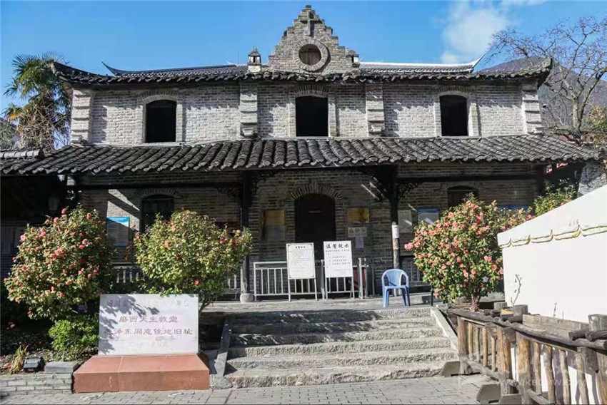 神甫樓是一幢兩層高的青磚土瓦房。樓前有塊白色花崗巖石碑,上面刻有“磨西天主教堂”“毛澤東同志住地舊址”等字樣。神甫樓內,辦公桌、坐椅、柜子等紅軍用過的物品有序陳列。輕踩在木質的樓梯上,“嘎吱”聲一波接一波,似歲月低吟,訴說著那段重要歷史。