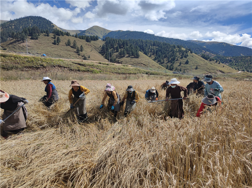 “增德村距鄉(xiāng)衛(wèi)生院差不多有6公里左右,衛(wèi)生院醫(yī)護人員每天到秋收現(xiàn)場對群眾進行核酸檢測,解決了秋收期間群眾兩頭跑的實際問題,現(xiàn)在鄉(xiāng)干部又來幫助我們秋收,今年豐收應(yīng)該沒有問題?!痹麓妩h支部書記格桑甲措說。