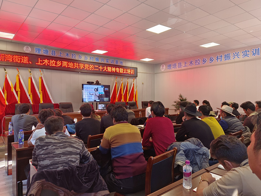 本網(wǎng)訊 近日,浙江省杭州市錢塘區(qū)新灣街道與結(jié)對鄉(xiāng)理塘縣上木拉鄉(xiāng)的黨員干部,以視頻連線、云上共學(xué)的方式,在云上共享了黨的二十大精神專題“云黨課”。