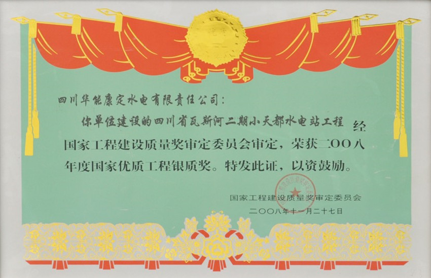 冷竹關水電站和小天都電站均獲得四川省建設工程最高質(zhì)量獎“天府杯”金獎,接受了朱镕基總理、第十一世班禪等黨和國家領導人多次視察。2006年11月,“康瀘電網(wǎng)”與小天都電站35千伏系統(tǒng)并網(wǎng)成功,結束了全省最后一個地市州未并入主網(wǎng)而“孤網(wǎng)運行”的歷史。小天都電站還是四川省首個獲得“國家優(yōu)質(zhì)工程獎”的水電站。
