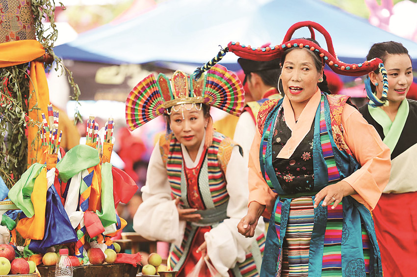 巴塘藏戲團(tuán)帶來(lái)了藏戲《智美更登》中“牧人”的唱腔片段,劇情中贊頌家鄉(xiāng)水草豐美,牛羊滿(mǎn)倉(cāng)的美好景象與九月豐收的巴塘美景相應(yīng)相合。