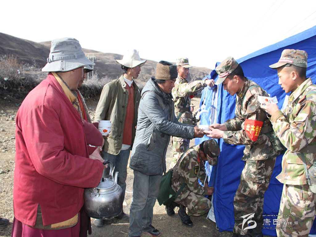 “這些救援隊(duì)員們舍去家人來幫助我們,我們沒別的東西,只有燒點(diǎn)熱茶來感謝他們。”尼瑪澤仁打開一袋牛奶,小心翼翼的倒進(jìn)熱茶里,隨后和村民拿著碗給武警戰(zhàn)士送去。
