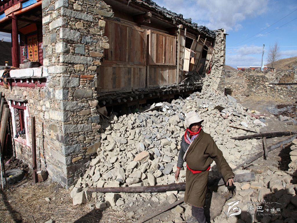 該村不少舊式藏居已經(jīng)徹底倒塌,瓦礫遍地。正在幫助村民搭建帳篷的中古村包村干部劉怡說(shuō),全村共189戶村民,125戶有房,受災(zāi)110棟房,其中五組受災(zāi)最嚴(yán)重,31戶房屋倒塌。這個(gè)村當(dāng)年沒有被納入牧民定居建設(shè)。