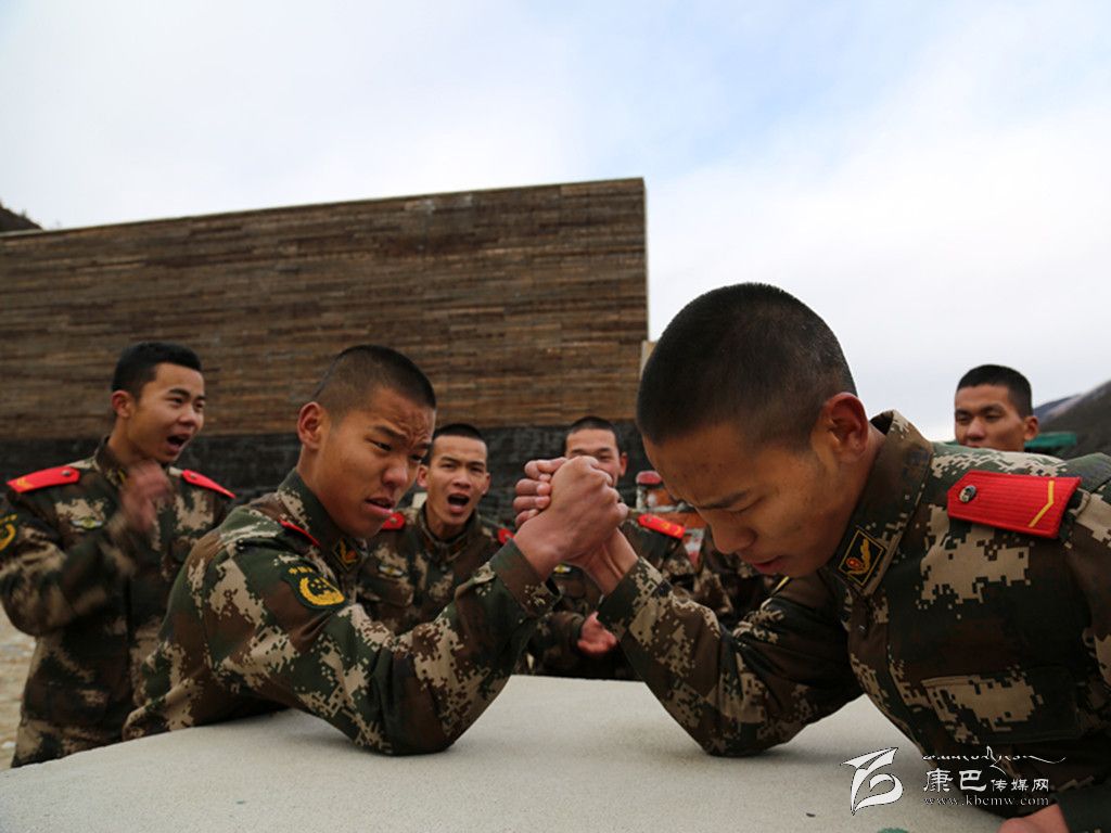 隆冬的康巴高原,早已銀裝素裹,寒氣逼人,但寒風(fēng)簌簌也擋不住訓(xùn)練場(chǎng)上火熱的激情,兄弟倆在眾人的歡呼聲中正在進(jìn)行100米短跑比賽。兄弟倆互不相讓,你追我趕,誰(shuí)也不服輸,誰(shuí)也不讓著誰(shuí),幾乎同時(shí)抵達(dá)終點(diǎn)。沒(méi)有分個(gè)高低,兄弟倆又在器械上較了勁,你做一個(gè)我就要做兩個(gè),你做兩個(gè)我就要做三個(gè)……班上的戰(zhàn)友也被兄弟倆感染著,在訓(xùn)練場(chǎng)上也互相較起了勁,掀起了“對(duì)抗風(fēng)暴”。